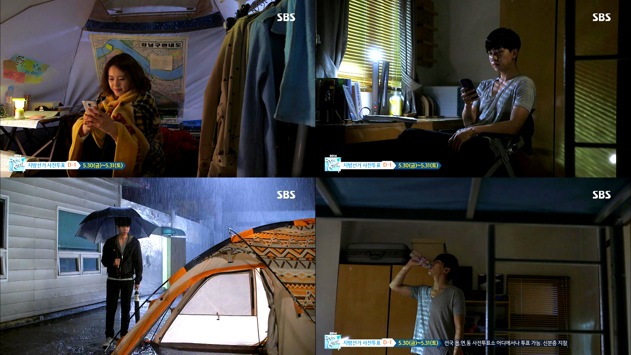晚上的時候,下起大雨來,住在帳篷內的魚秀善也跟殷大邱在短訊上聊天,可是大邱沒多想便說很忙。隔了一會,大邱看著出面的雨真的很大,再想一想小魚的短訊,才明白她的意思。大邱來到警察局的天台來找小魚,可是就是找不到,在警察局的其地方也找了一遍,也沒找到了。他也差點進入了女警專用的房間去找小魚,可是想真一點,他也不明白他為何會這樣子的。回到家中,他立刻讓自己冷靜下來,平時再危急的情況下,他也能很理智地面對,可是小魚的事情卻令他手足無措。