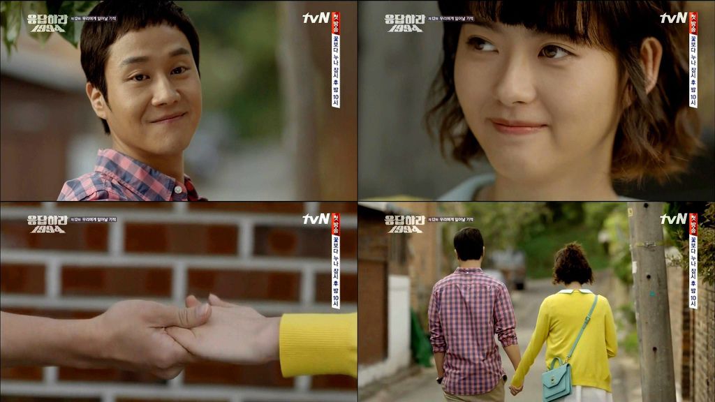 然後,Oppa向娜靜伸手,示意要拖著她一起走,娜靜扭捏一翻後,也捉著Oppa的手了。二人不期然展露出最甜蜜的笑容,然後如情侶般的拖著手上路。