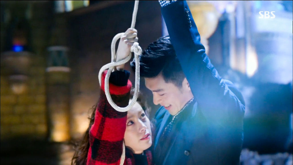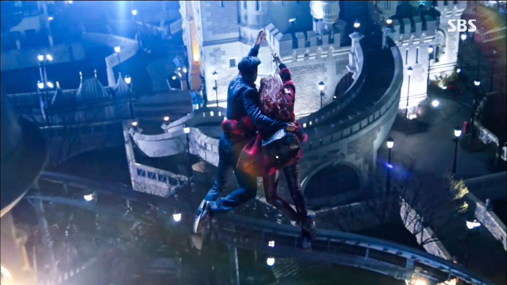 這一集其中一個亮點是Falling,《Falling》是指朴寶藍主唱的OST Part 1,樂曲很優美,歌詞中的Falling也和劇情很合襯。張荷娜在這集中包辦了兩個Falling,第一個是和羅賓利用繩子逃走,第二個則是從具瑞鎮大宅中的窗戶跳下來然後讓羅賓抱著。第一個有點武俠片的感覺,二人單手捉著縄子,含情默默的互望,在遊樂園中飛蕩,好不浪漫的樣子。第二個在羅賓把張荷娜接著的一舜間,二人臉上的笑容可不是一般的朋友之間的微笑,然後二人手拖手的逃避保安員的追捕,真的很有亡命天涯的感覺。
